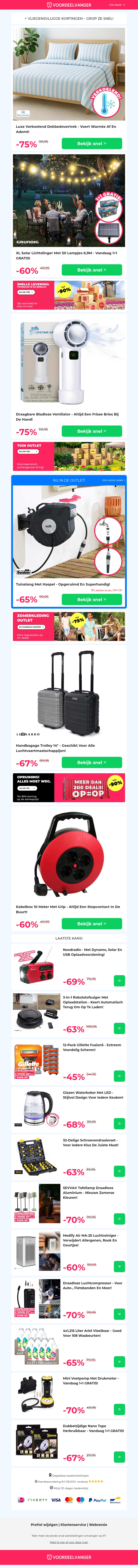 ππ₯Ά Verkoelend Dekbedovertrek: 75% KORTING / Solar Lichtslinger / Draadloze Ventilator / Hangage Trolley 14" / Kabelbox 10 Meter