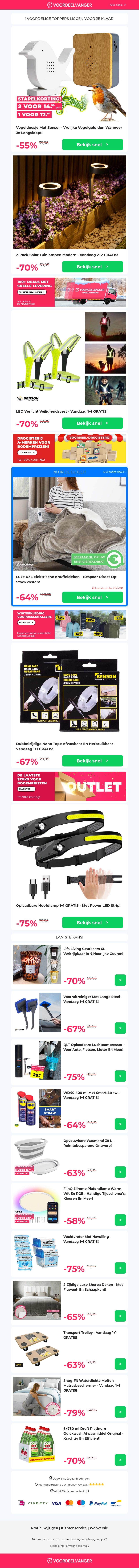 Duik in onze nieuwsbrief en ontdek fantastische aanbiedingen! Profiteer van 55% korting op vogeldoosjes met sensor en ontvang 2+2 gratis op solar tuinlampen. Veiligheidsvesten zijn verlicht en verkrijgbaar, evenals Nano Tape met een 1+1 deal. Mis de kans niet om slimme hoofdlampen te scoren met een 1+1 aanbieding. Zorg ervoor dat je indrukwekkende besparingen op deze essentiΓ«le producten niet mist.