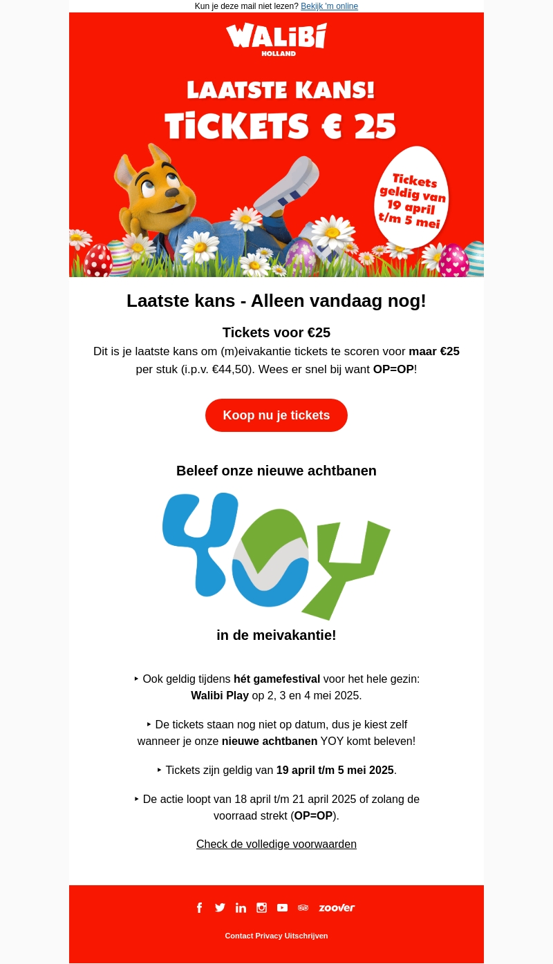 🐥 Alleen vandaag nog: tickets voor maar € 25!