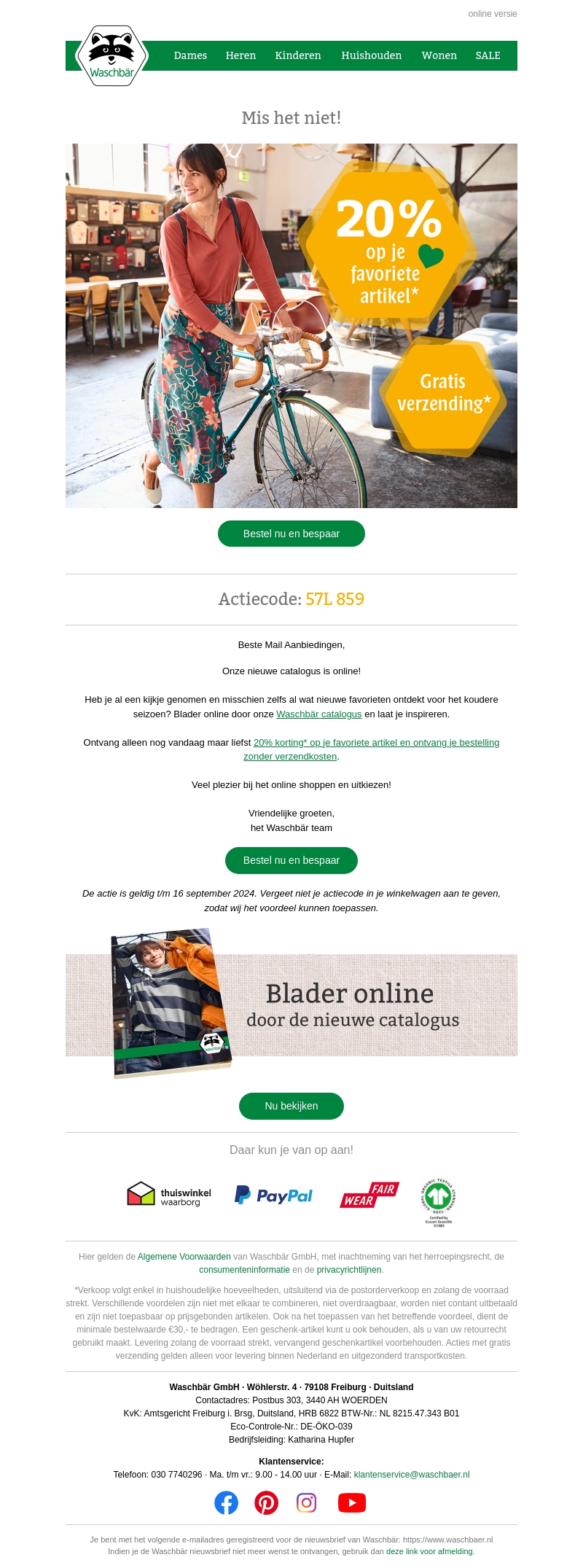 Onze nieuwste catalogus is online en we vieren dit met een speciale aanbieding: ontvang 20% korting op je favoriete artikel en gratis verzending. Dit aanbod is alleen geldig vandaag, dus wacht niet langer. Bekijk nu onze catalogus en vind jouw nieuwe favorieten voor het koudere seizoen.