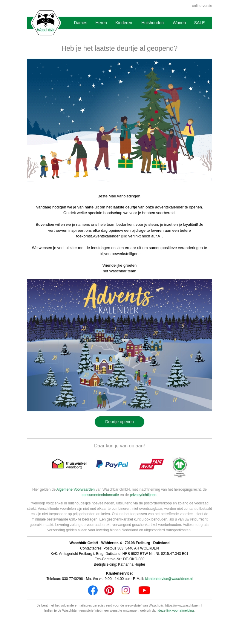 Beleef de magie van de feestdagen met Waschbär's adventskalender. Open het laatste deurtje en ontdek de speciale boodschap die we voor je hebben voorbereid. Bedankt voor je steun en vertrouwen dit jaar. We kijken uit naar een toekomst vol positieve veranderingen!