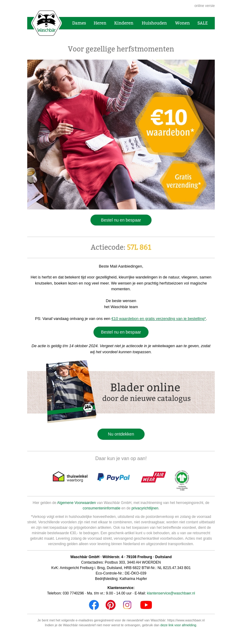 Het is herfst en dat betekent tijd voor gezelligheid en besparingen. Ontvang nu een €10 herfstwaardebon en geniet van gratis verzending op je bestelling. Deze actie is geldig tot 14 oktober 2024. Vergeet niet je actiecode in te vullen bij het afrekenen. Bekijk ook onze nieuwe catalogus online!