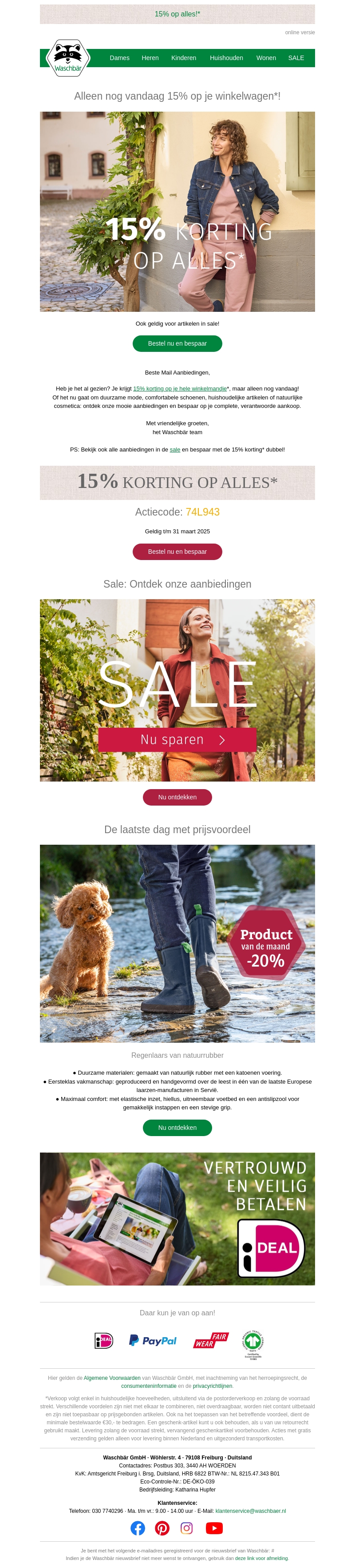 alleen nog vandaag 15 op je hele winkelmandje 6endcplf