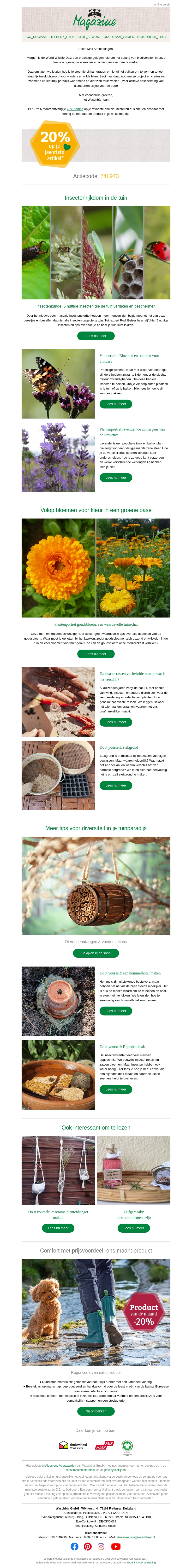 Ontdek de nieuwste tips in onze nieuwsbrief om diversiteit in je tuin te brengen. Leer hoe bloemen en insecten harmonieus samenleven, en ontvang handige tuinieradviezen. Profiteer van een speciale korting met onze unieke code.