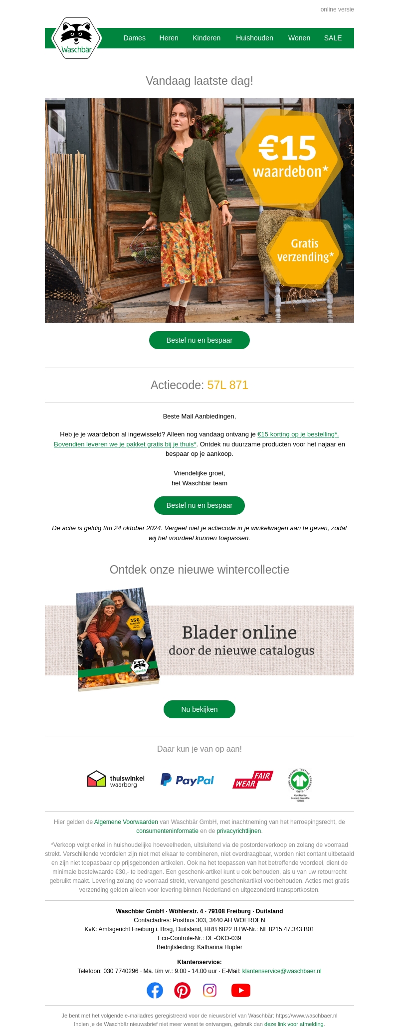 Geniet van een exclusieve €15 waardebon op je volgende aankoop bij Waschbär, beschikbaar tot 24 oktober 2024. Maak gebruik van onze gratis leveringsdienst en ontdek onze nieuwe wintercollectie. Plaats je bestelling vandaag nog en profiteer van duurzame producten en geweldige deals.