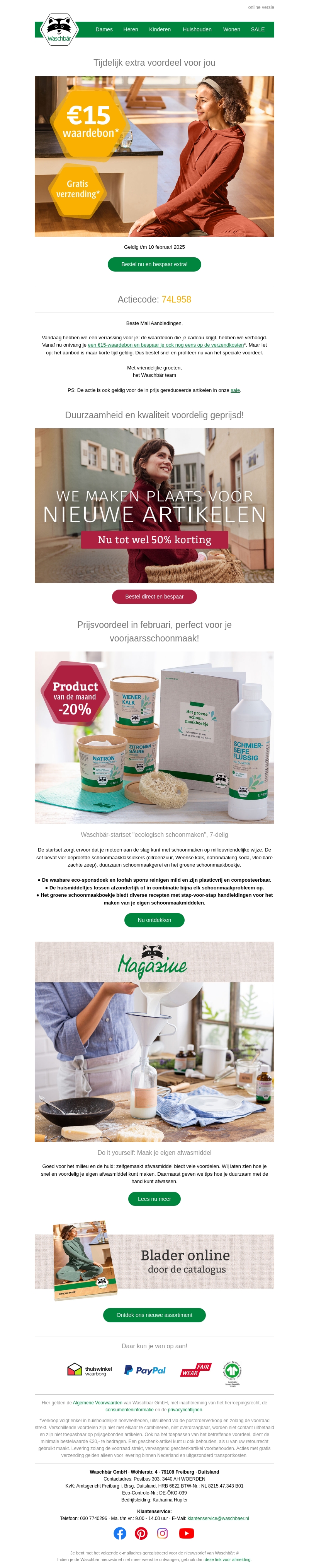 Ontdek de nieuwste aanbiedingen met een extra voordeel van een €15 waardebon en gratis verzending. Geniet van duurzame producten met tot 50% korting, perfect voor de voorjaarschoonmaak. Bespaar nu op het ecologisch schoonmaken met de speciale starterset. Bezoek onze online catalogus voor meer inspirerende producten.