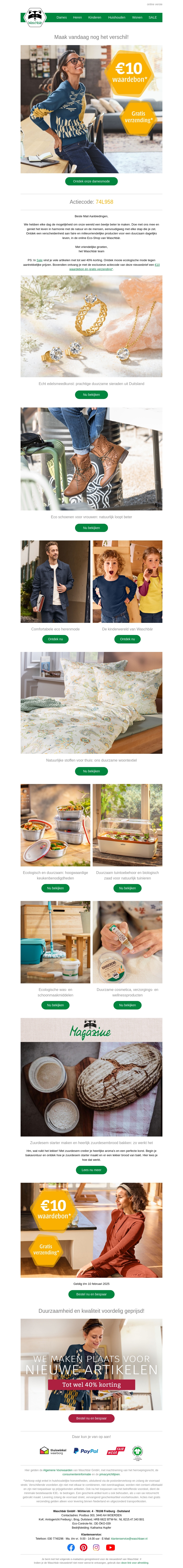 Maak vandaag nog het verschil met een exclusieve €10 waardebon en gratis verzending bij uw aankoop. Ontdek duurzaam winkelen en geniet van de nieuwste collecties. Mis deze kans niet om op een bewuste manier te besparen. Het aanbod is tijdelijk, dus sla snel uw slag.