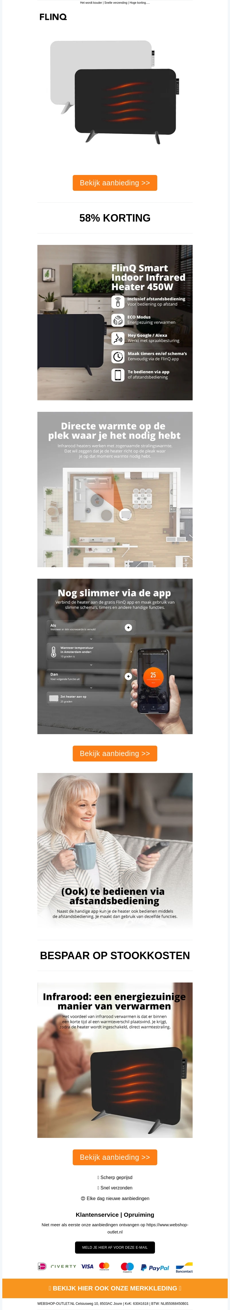 Bespaar tot wel 58% op je stookkosten met de FlinQ Smart Indoor Infrared Heater. Dit slimme verwarmingsapparaat biedt directe warmte op de plek waar je het nodig hebt en kan eenvoudig worden bediend via een app of afstandsbediening. Geschikt voor spraakbesturing met Google Assistant en Alexa, het biedt comfort en innovatie in รฉรฉn.