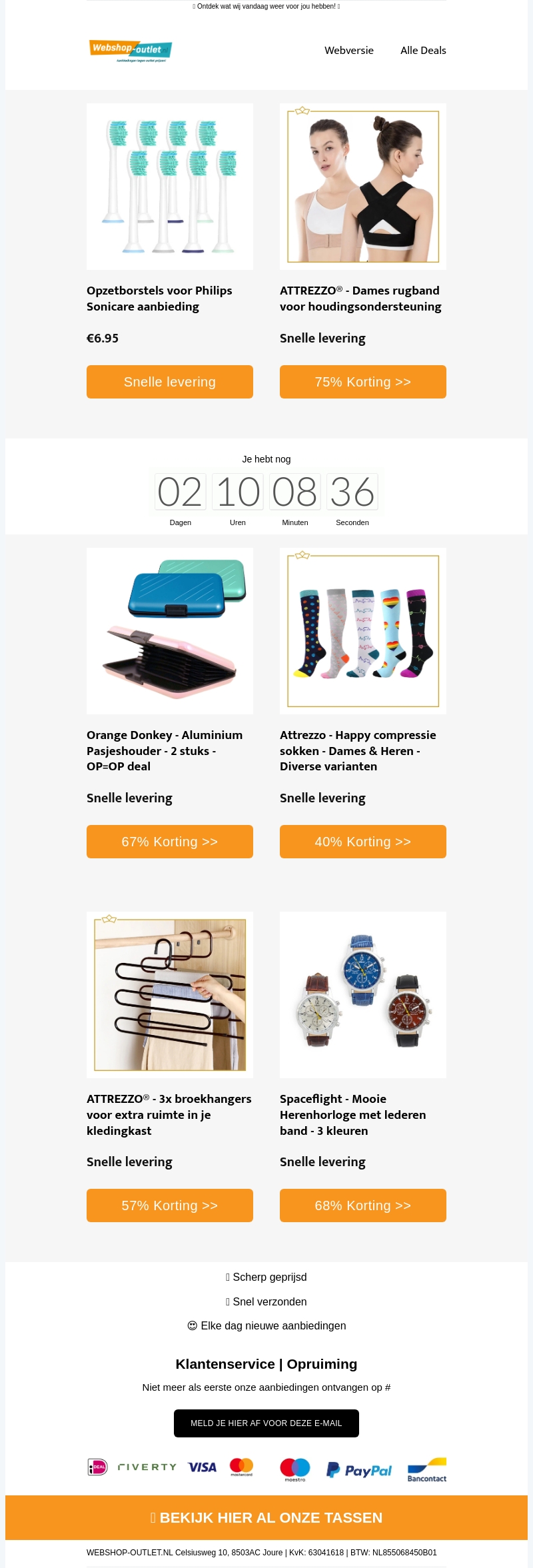 Verwen jezelf met onze scherpe aanbiedingen, allemaal onder โฌ12,50. Van handige huishoudelijke artikelen tot stijlvolle accessoires, er is voor ieder wat wils. Profiteer nu van kortingen tot wel 75% en snelle levering. Mis deze deals niet en bespaar flink op je volgende aankoop.