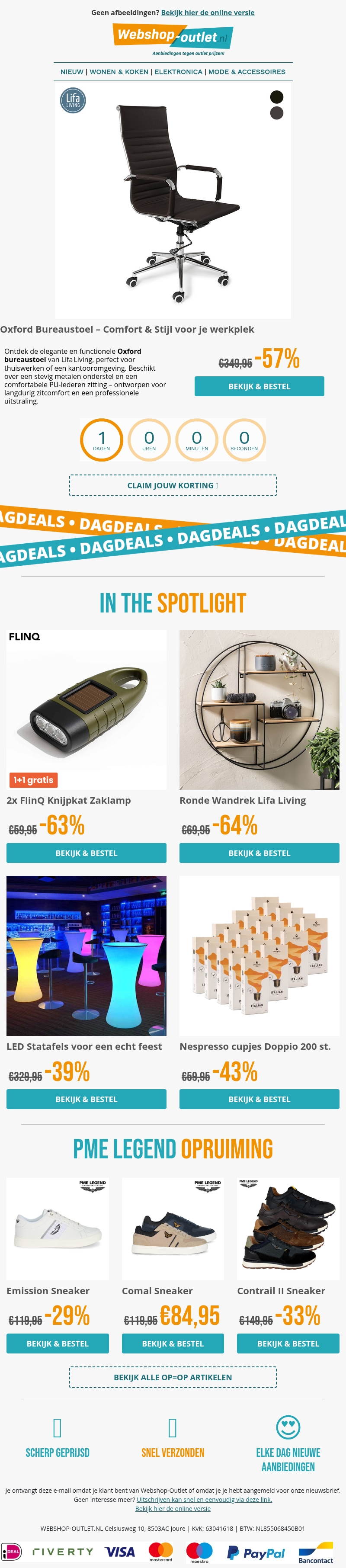 Design Bureaustoel / Zaklamp zonder Batterij / Ronde Wandrek / LED Statafels / Nespresso Koffiecupjes