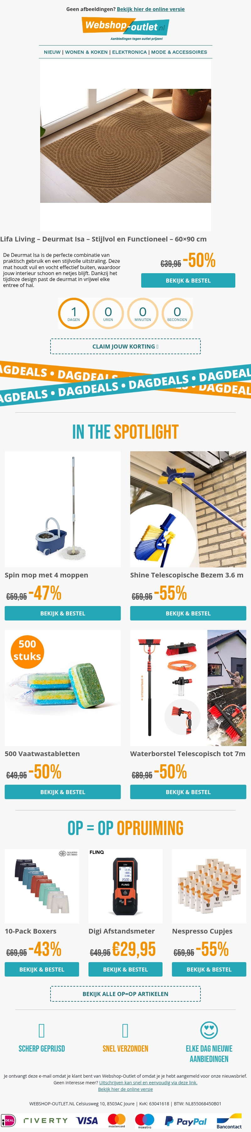 Deurmat Isa van Lifa Living / Spin Mop / Mega Telescopische Bezem 3.6 m / En meer..