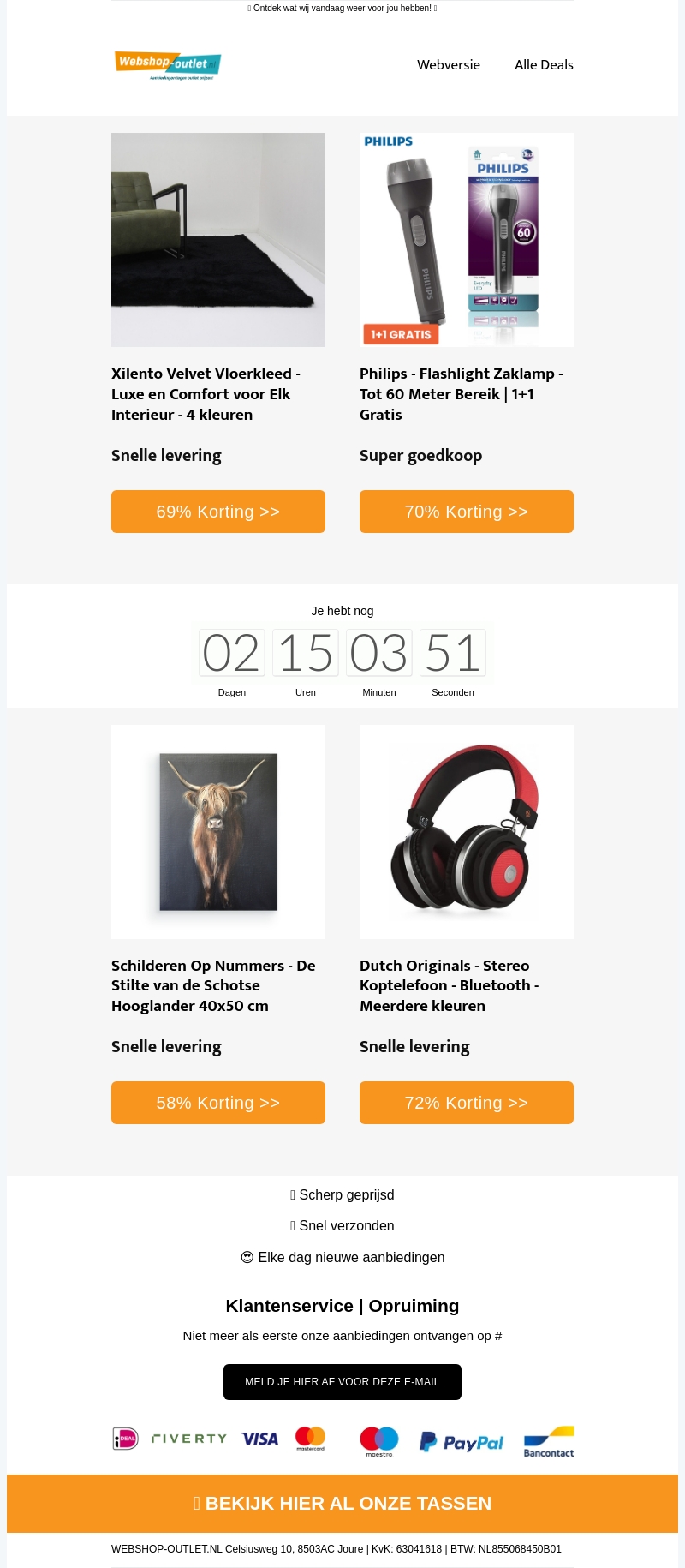 Philips Zaklampen 1+1 actie / Luxe Vloerkleden / En meer..