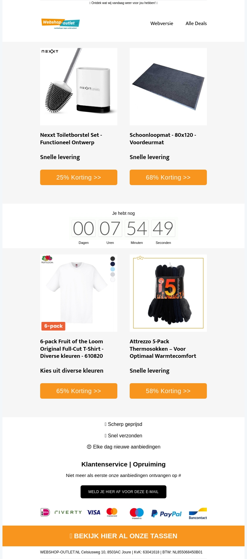 Profiteer van fantastische kortingen op onze schoonloopmat 80x120 cm en Nexxt toiletborstel. Snelle levering en topkwaliteit gegarandeerd. Mis deze kans niet op voordelige prijzen en bestel vandaag nog!