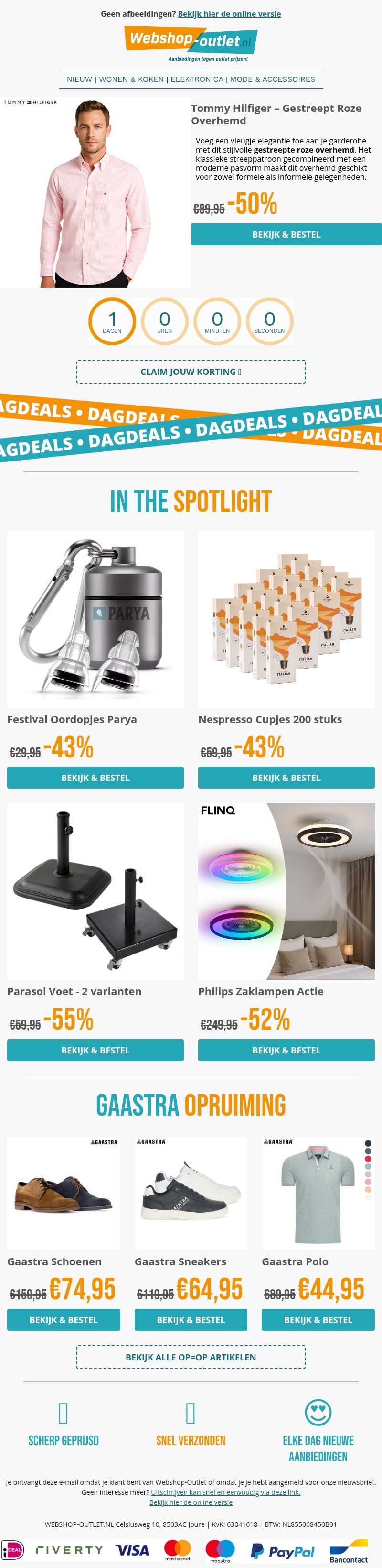 Tommy Hilfiger Overhemd / Festival Oordopjes / Parasol Voet / Verkoelende Lamp van FlinQ / Nespresso Cupjes