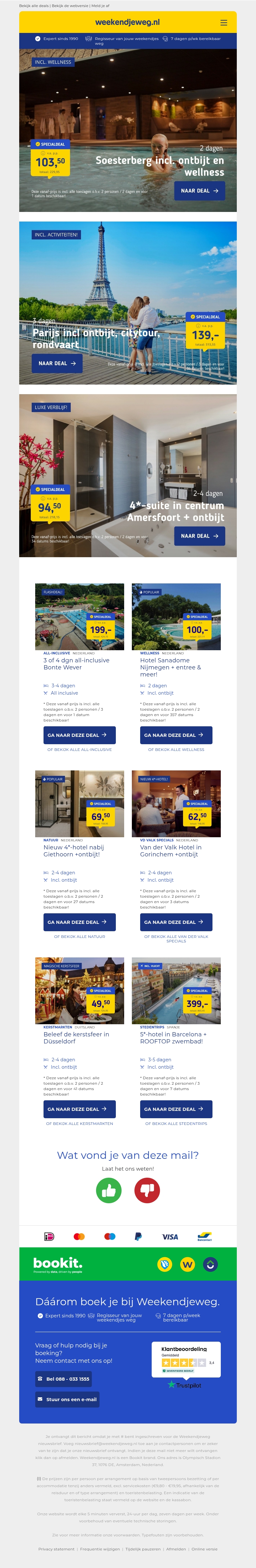 Mega Wellness Deal! πββοΈ Entree Soesterberg + hotel + ontbijt v.a. 103,50 | βοΈ 3 dgn Parijs + citytour + rondvaart v.a. 139 p.p.!
