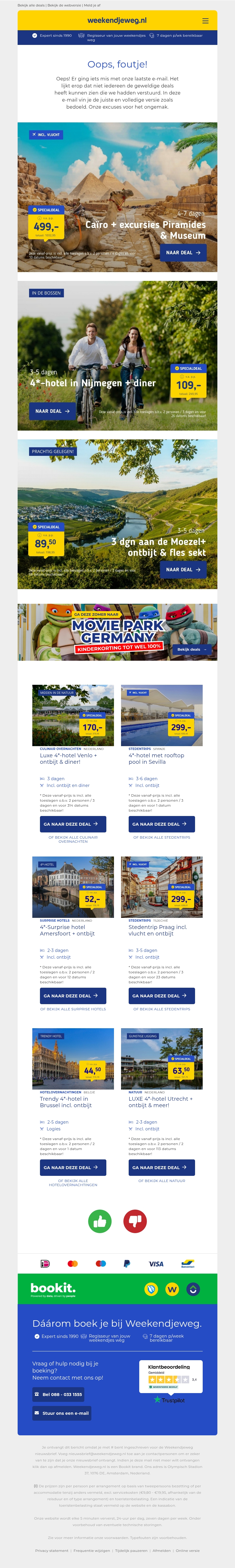 π§ Oeps! Er ging iets mis in onze vorige nieuwsbrief | CaΓ―ro Mega-alles-in-1 Excursietrip β¬499 | 3 dgn Nijmegen + ontbijt & diner 109 p.p.!