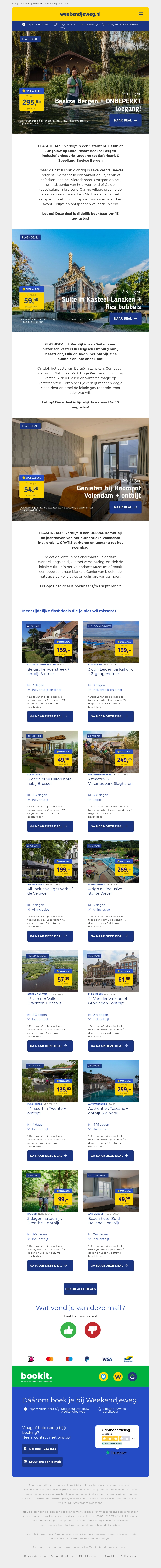 β‘ Start je week goed: 3x nieuwe flashdeals live! π Beekse Bergen v.a. 295,95 | Kasteelhotel Belgisch Limburg v.a. 59,50 p.p. | Volendam v.a. 54,50 p.p.