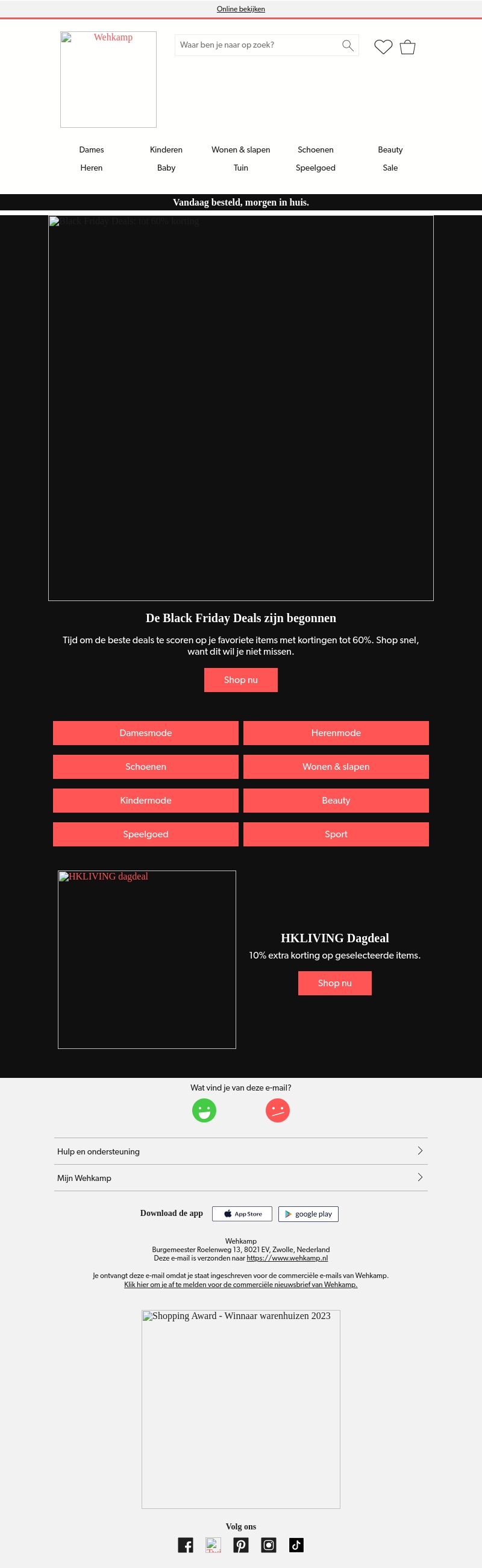Wehkamp presenteert spectaculaire Black Friday aanbiedingen met kortingen tot 60% op diverse categorieën zoals damesmode, herenmode, en meer. Mis deze unieke kans niet om je favoriete items goedkoop in te slaan. Daarnaast is er een speciale HKLIVING dagdeal met 10% extra korting op geselecteerde items. Shop snel en bepaal zelf je fashion statement. Vandaag besteld, morgen in huis!