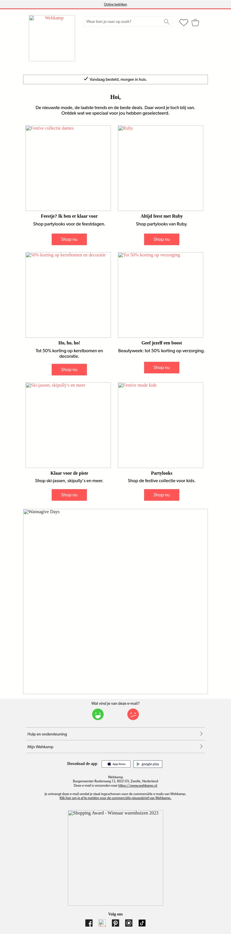 Verwen jezelf deze feestdagen met de nieuwste mode en stijlvolle decoraties. Wehkamp biedt kortingen tot 50% op kerstartikelen en verzorgingsproducten. Ontdek feestelijke collecties voor dames en kinderen. Klaar voor de piste? Kijk dan naar onze skikleding aanbiedingen. Mis geen deals en shop nu.