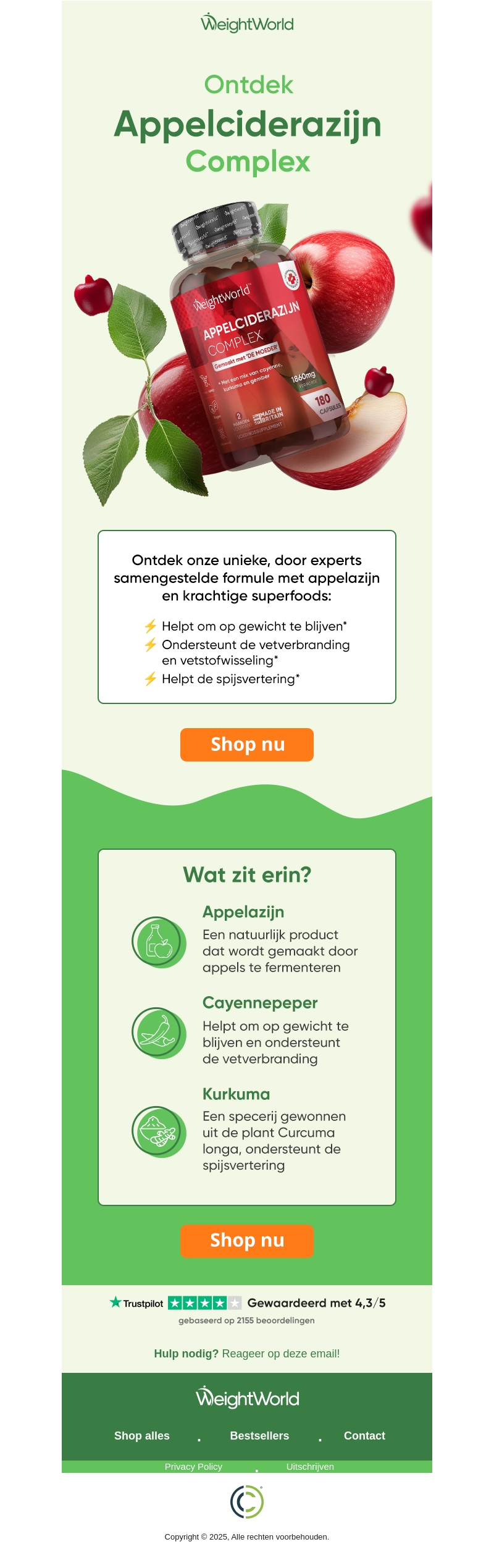 Ontdek onze Appelciderazijn Complex, een unieke formule die je helpt op gewicht te blijven en je stofwisseling te ondersteunen. Met krachtige ingrediënten zoals appelciderazijn, cayennepeper en kurkuma, bevordert het de vetverbranding en spijsvertering. Ideaal voor iedereen die op zoek is naar natuurlijke ondersteuning van hun gezondheidsdoelen.