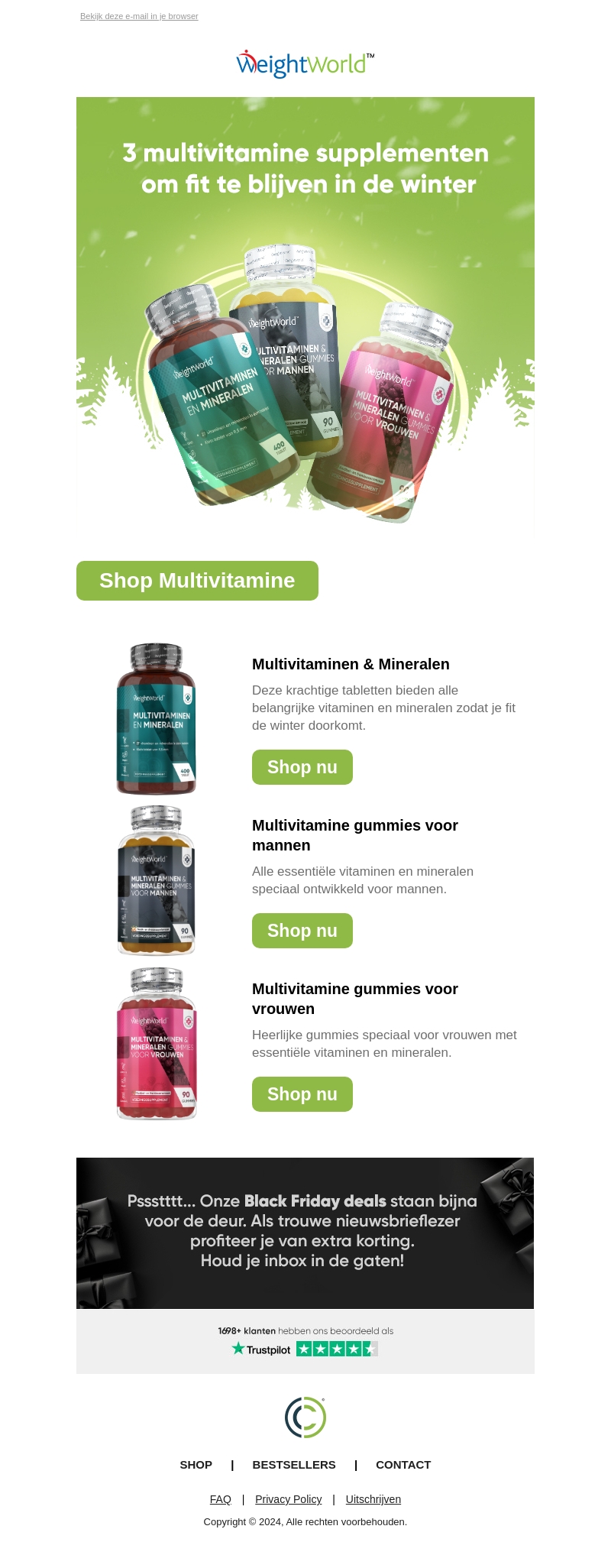 Ontdek onze krachtige multivitaminen en mineralen om je immuunsysteem te versterken tijdens de koude wintermaanden. Kies uit tabletten en gummies voor mannen en vrouwen. Mis ook onze aankomende Black Friday deals niet voor extra kortingen.