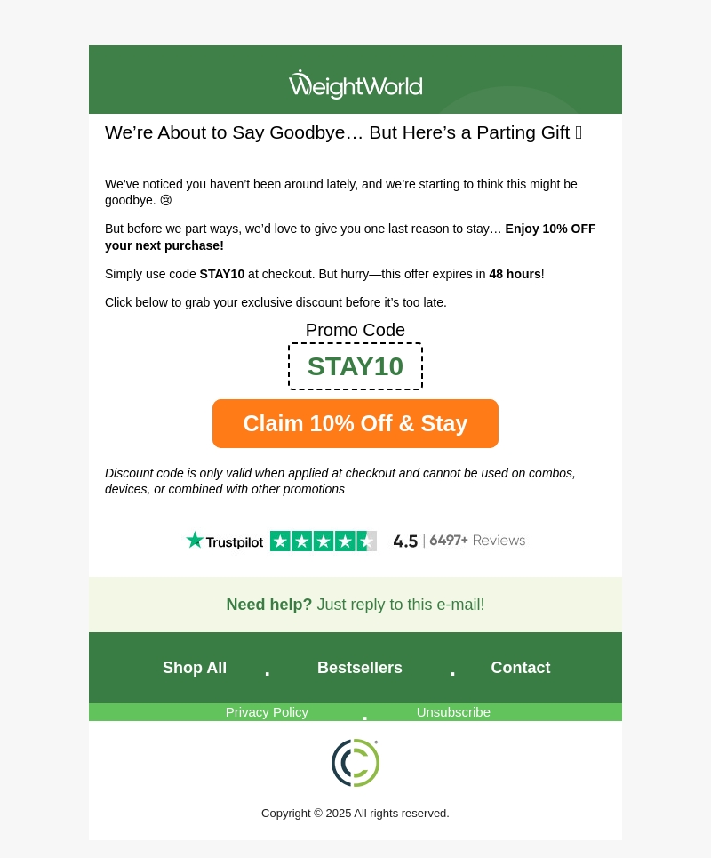We Might Say Goodbye… But Here’s 10% Off If You Stay! 💔