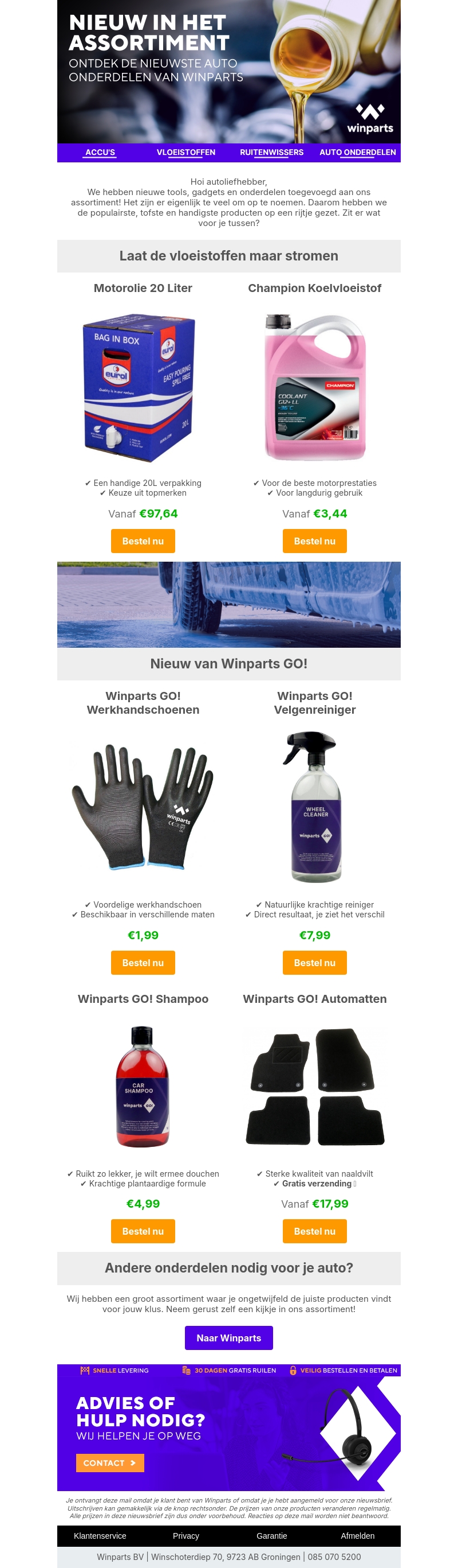 Hoi autoliefhebber, ontdek de nieuwste auto-onderdelen bij Winparts! We hebben nieuwe tools, gadgets en onderdelen toegevoegd aan ons assortiment. Van motorolie tot werkhandschoenen, bekijk de nieuwste producten nu!