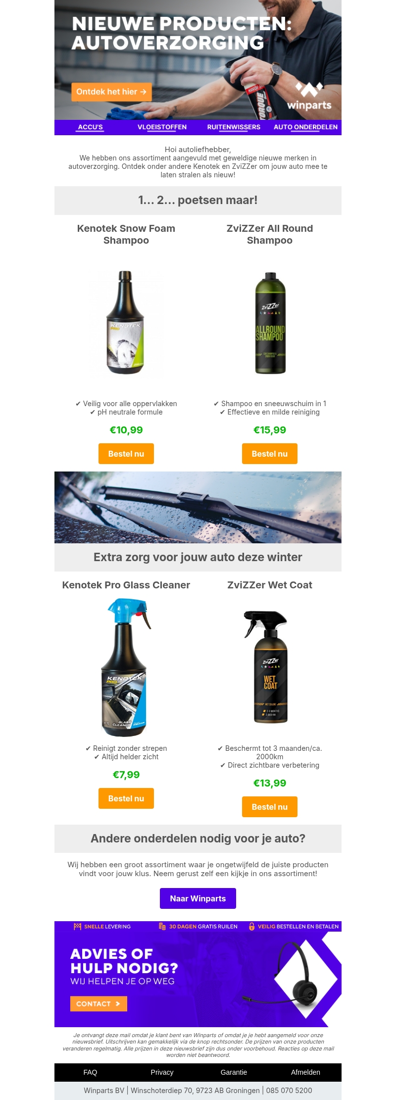 Verwen je auto met de nieuwste producten van Kenotek en ZviZZer. Onze hoogwaardige shampoos en reinigers zorgen voor een stralend resultaat. Ontdek veilige, pH-neutrale formules die eenvoudig te gebruiken zijn. Bescherm je auto tot wel 3 maanden met onze innovatieve coatings. Bezoek nu Winparts voor meer essentiele auto-onderdelen.