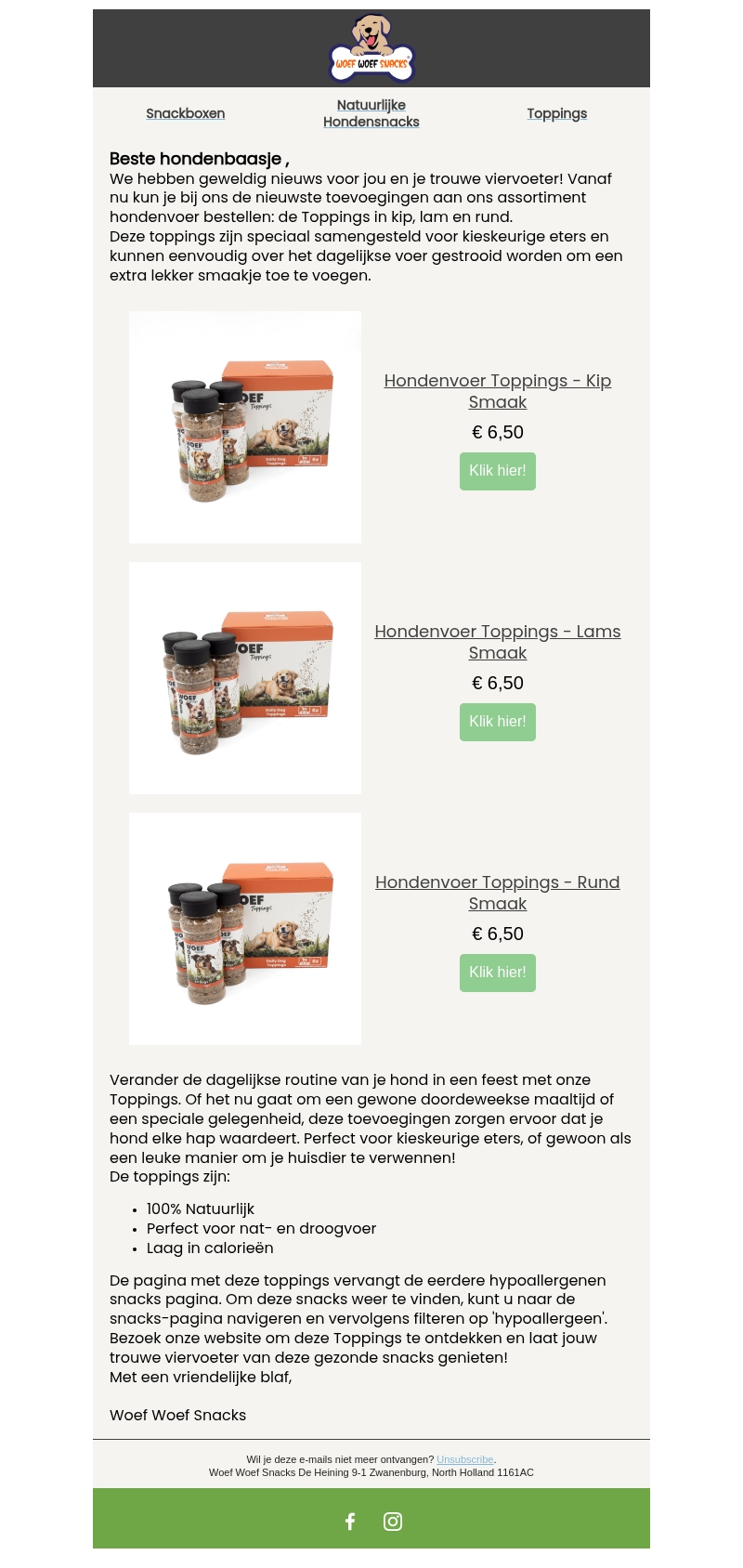 Nieuwe producten in ons assortiment! Hondenvoer Toppings in kip, lam en rund!