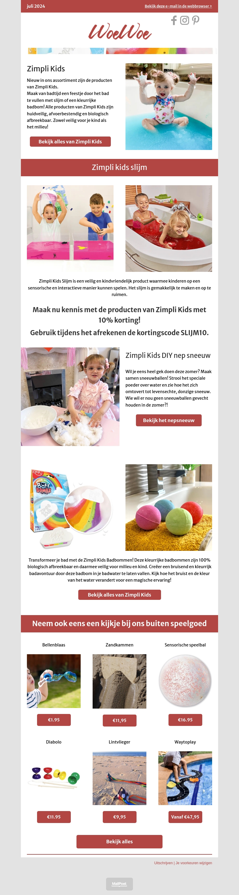 Maak kennis met de laatste producten van Zimpli Kids bij WoeWoe. Van kleurrijk slijm tot magische badbommen, deze kindvriendelijke producten zijn biologisch afbreekbaar en veilig voor het milieu. Profiteer nu van 10% korting met kortingscode SLIJM10. Ontdek ook ons buiten speelgoed voor uren speelplezier.