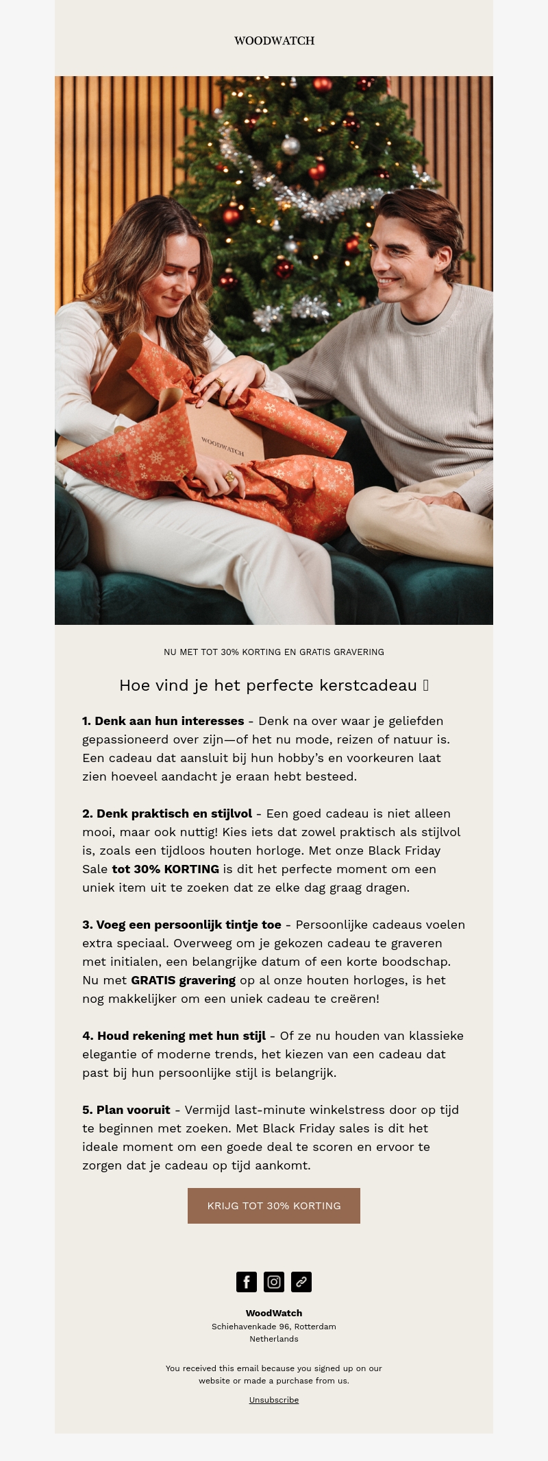 WoodWatch inspireert je met creatieve ideeΓ«n om het perfecte kerstcadeau te kiezen. Denk aan interesses, voeg een persoonlijk tintje toe en kies een cadeau dat zowel praktisch als stijlvol is. Profiteer van de Black Friday sales met kortingen tot 30% en gratis graveren op houten horloges. Plan vooruit om de stress te vermijden en zorg ervoor dat je cadeaus op tijd arriveren.