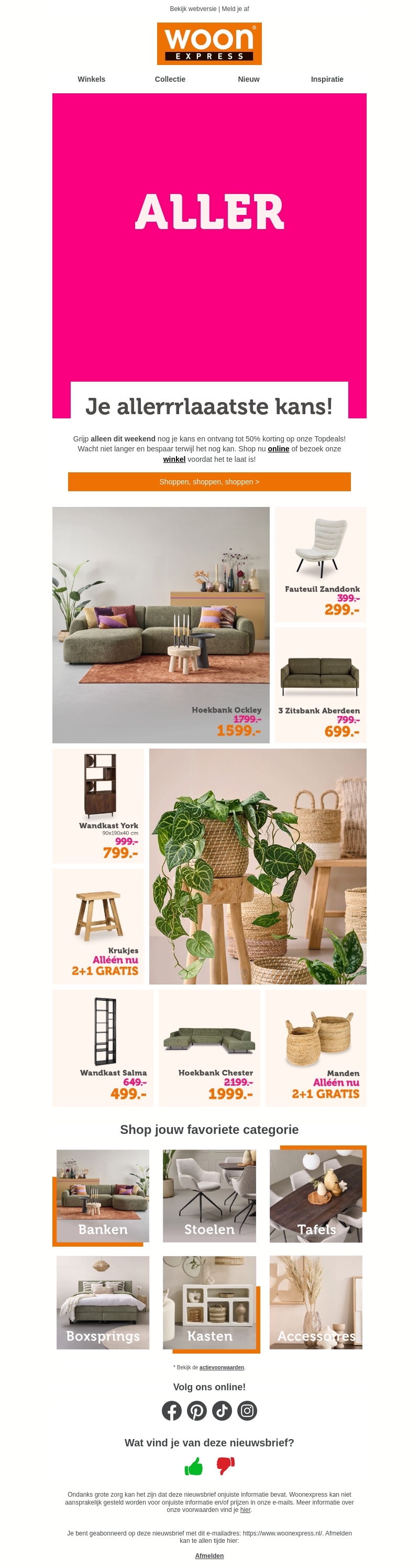 Grijp je laatste kans om te profiteren van kortingen tot 50% op onze populairste items! Deze aanbiedingen zijn alleen dit weekend beschikbaar. Shop nu online of bezoek onze winkel voordat het te laat is!