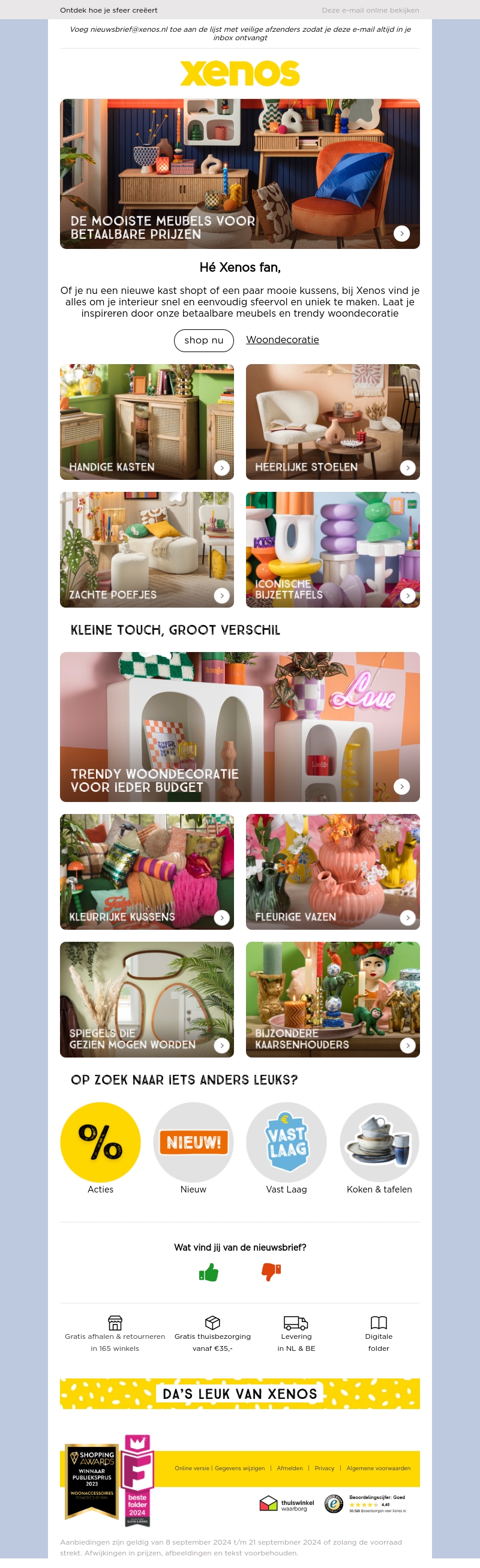 Bij Xenos vind je alles om je interieur snel en eenvoudig sfeer te geven. Van betaalbare meubels tot trendy woondecoratie, ontdek het grote verschil dat een kleine touch kan maken. Shop nu handige kasten, heerlijke stoelen, en meer.