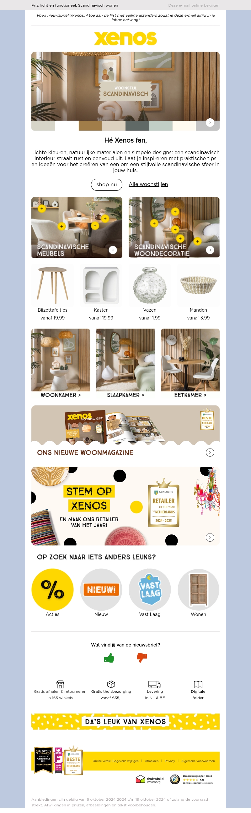 Laat je inspireren door de Scandinavische woonstijl bij Xenos. Met lichte kleuren en natuurlijke materialen straalt je interieur rust uit. Ontdek meubels, woondecoratie en praktische tips om je huis eenvoudig en stijlvol in te richten. Bekijk het nieuwe woonmagazine voor meer ideeën.