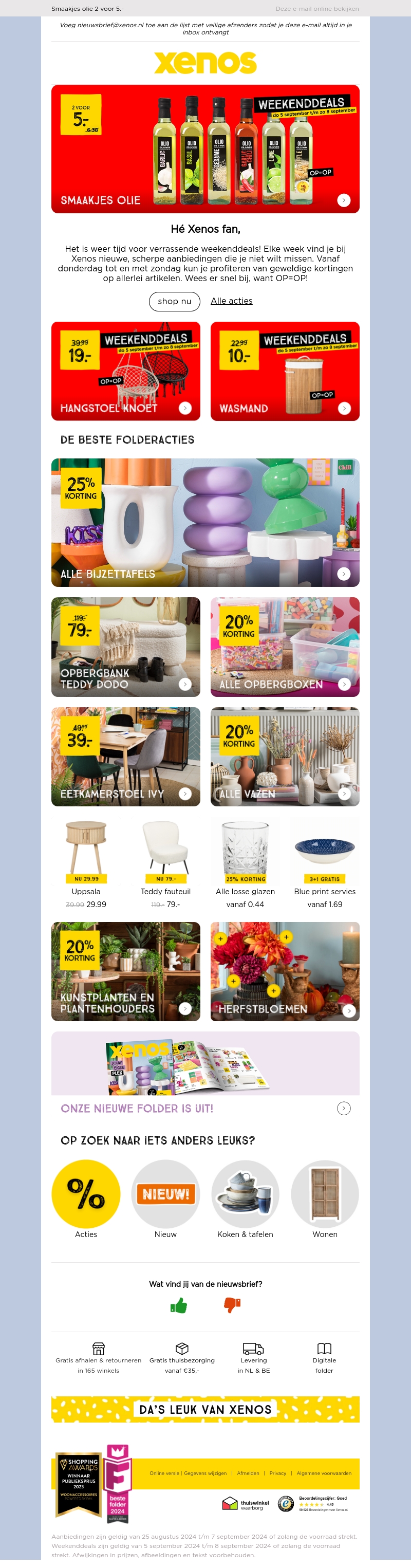 Het is weer tijd voor verrassende weekenddeals bij Xenos! Vind scherpe aanbiedingen die je niet wilt missen. Van donderdagnacht tot en met zondag kun je profiteren van geweldige kortingen op allerlei artikelen. Wees er snel bij, want OP=OP!