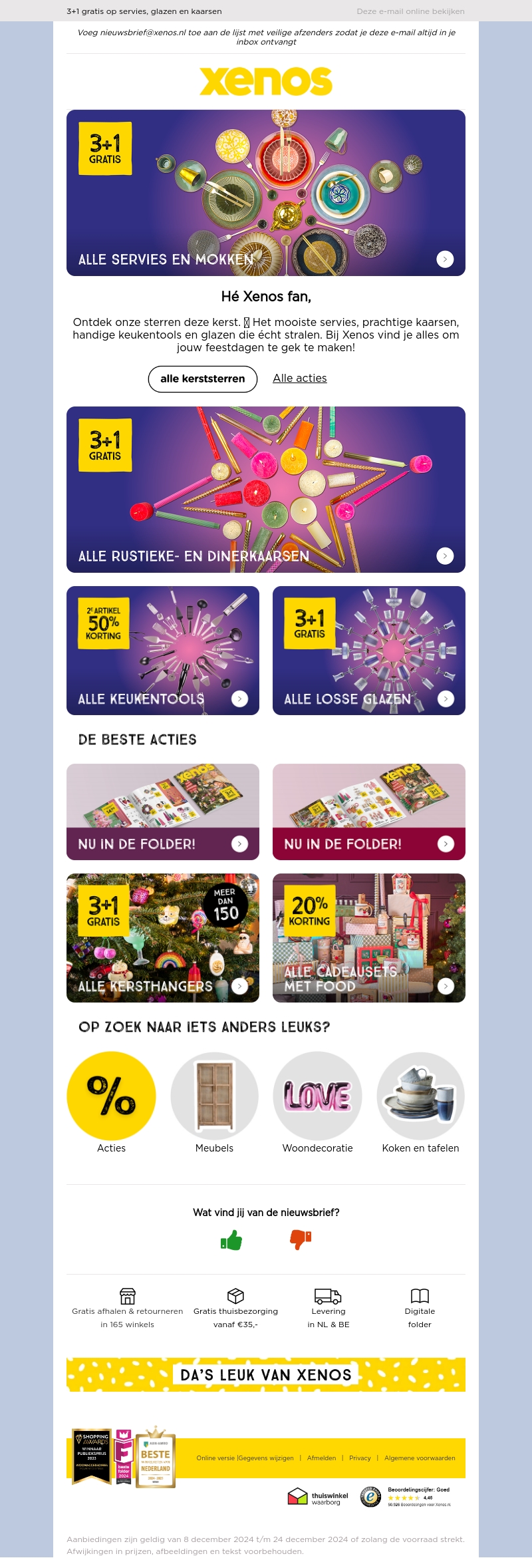 Koop nu het mooiste servies, prachtige kaarsen en handige keukentools met exclusieve kerstdeals bij Xenos. Profiteer van aanbiedingen zoals 3+1 gratis op servies en glazen, en 20% korting op cadeau-sets met eten. Ontdek de sterren van deze kerst en maak jouw feestdagen onvergetelijk.