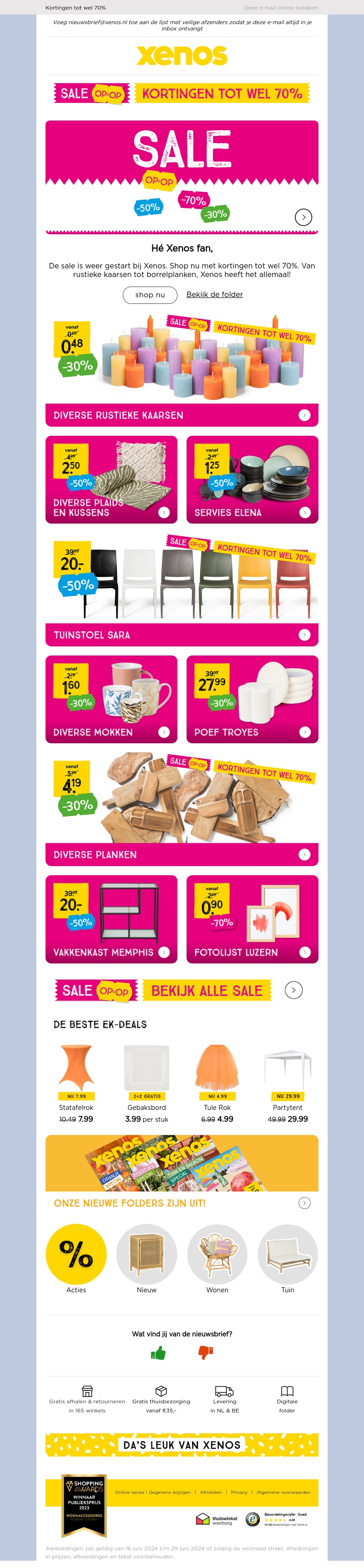 De Xenos SALE is begonnen met kortingen tot wel 70%! Van rustieke kaarsen tot borrelplanken en veel meer. Zorg dat je niets mist en bekijk alle geweldige deals!