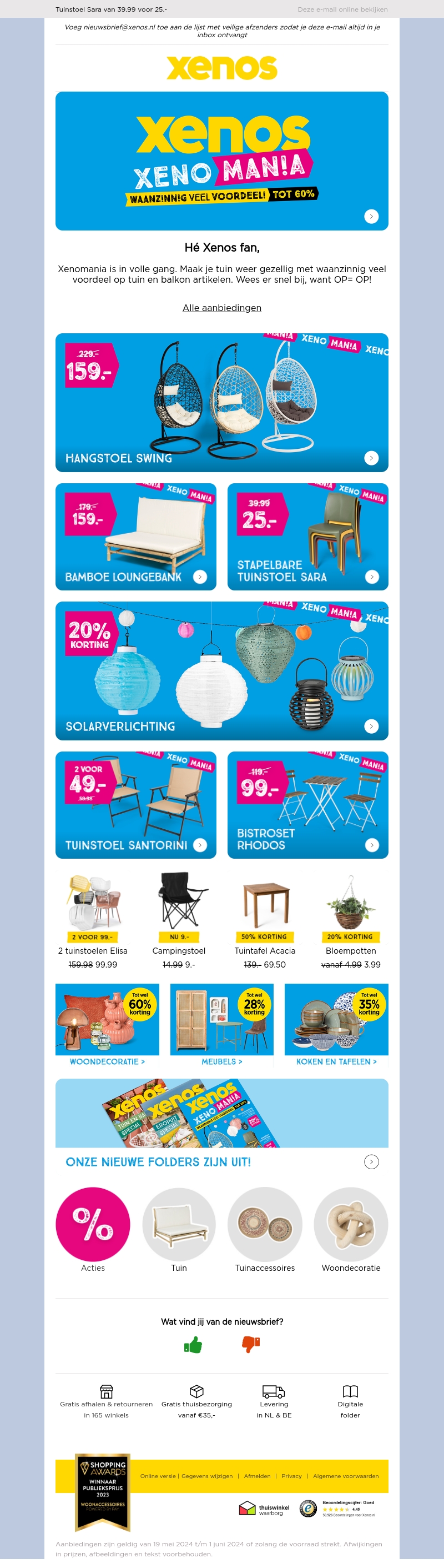Xenomania is in volle gang bij Xenos! Ontdek geweldige kortingen tot wel 60% op diverse tuin- en balkonartikelen. Van hangstoelen tot solarverlichting, er is voor ieder wat wils. Shop snel want OP=OP!