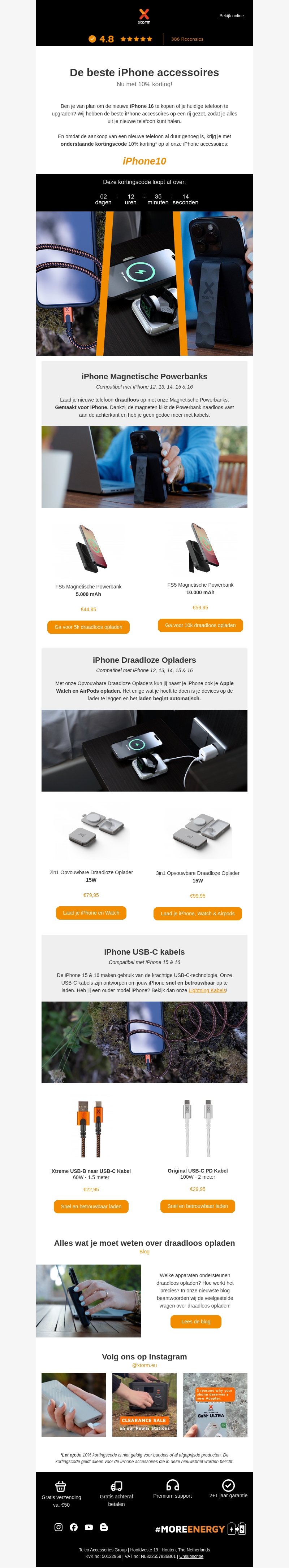 Profiteer nu van 10% korting op de beste iPhone accessoires! Van magnetische powerbanks tot draadloze opladers en USB-C kabels. Ontdek onze topselectie van producten die compatibel zijn met iPhone 12, 13, 14 en 15. Gebruik de kortingscode iPhone10 en mis deze kans niet.