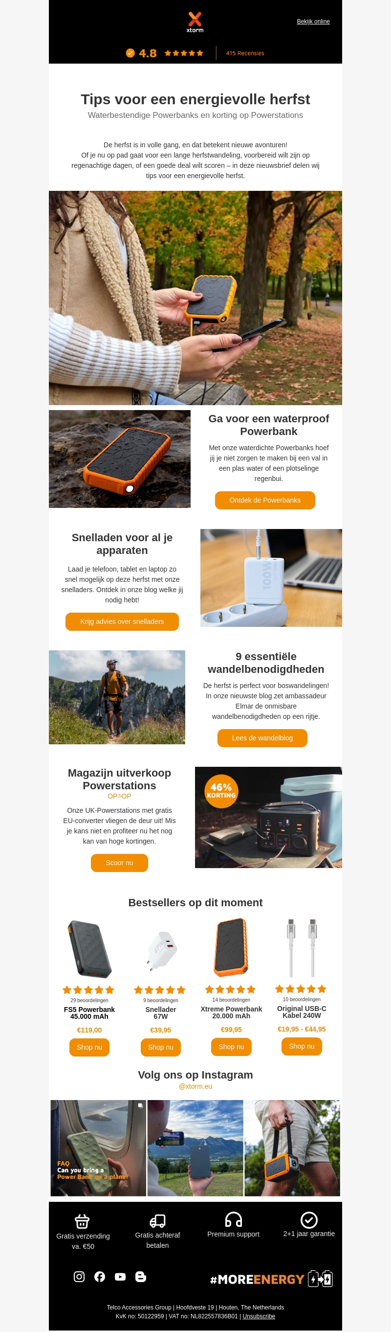 De herfst is perfect voor nieuwe avonturen met onze Powerstations en waterbestendige Powerbanks. Zorg dat je je apparaten snel kunt opladen met onze krachtige snelladers. Lees ons wandelblog voor 9 essentiΓ«le wandelbenodigdheden en profiteer van uitverkoopkortingen. Ontdek de bestsellers van dit moment voor scherpe prijzen.