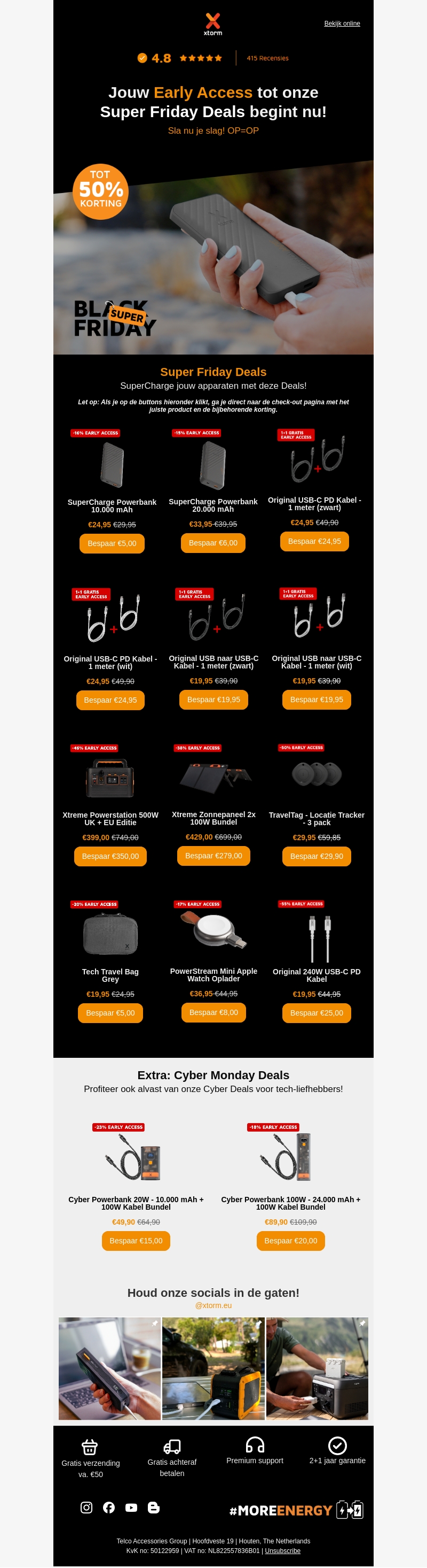 Ontdek onze Super Friday Deals met kortingen tot wel 50%! Profiteer van fantastische aanbiedingen zoals powerbanks, kabels en meer. Mis deze kans niet om je tech-collectie uit te breiden. Verzekerd van premium support en gratis verzending vanaf β¬50. Wees er snel bij, op=op!