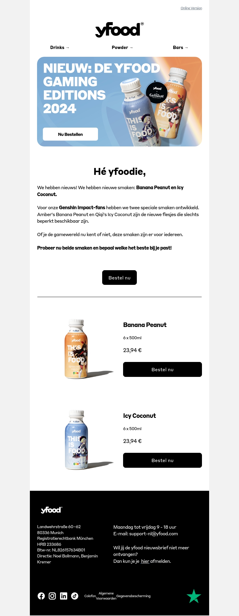 We introduceren twee nieuwe smaken: Banana Peanut en Icy Coconut. Speciaal ontwikkeld voor Genshin Impact-fans, zijn deze limited edition smaken nu beschikbaar. Bestel nu en probeer beide smaken!