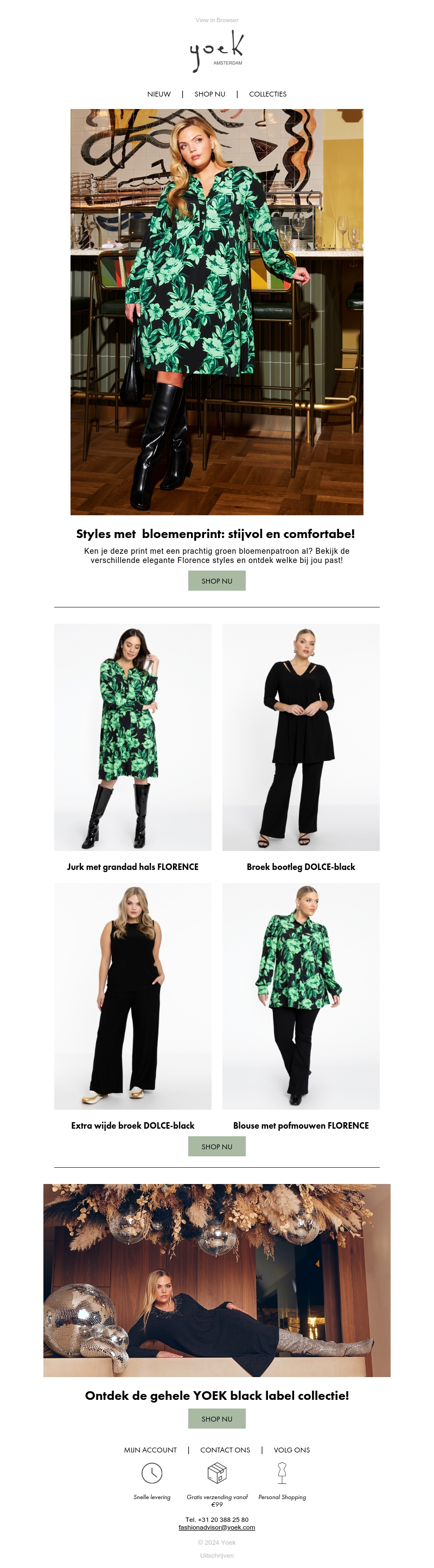 Verwen jezelf met de nieuwste collectie van Yoek, vol elegante bloemenprints. Deze stijlvolle en comfortabele lijn biedt verschillende Florence stijlen die bij jouw unieke smaak passen. Van jurken met een prachtige groen bloemenpatroon tot comfortabele broeken, de collectie is een perfecte mix van elegantie en comfort. Shop nu om jouw favoriete look te ontdekken.