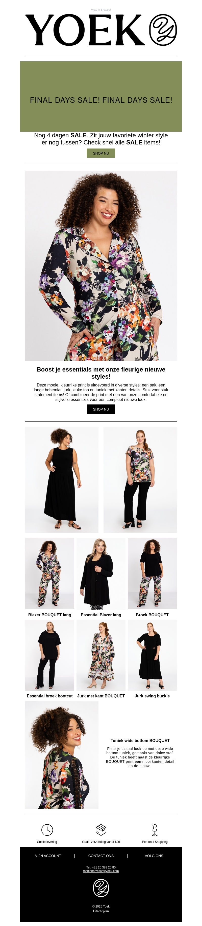 Boost je essentials met onze nieuwe, fleurige stijlen! Kies uit kledingstukken met prachtige prints en details, van blazers tot jurken. Grijp snel je kans om je garderobe te vernieuwen en de laatste trends te volgen. Alle items zijn nu in de sale, maar wees er snel bij want de actie geldt nog maar vier dagen. Bekijk onze collectie en vernieuw je stijl met onze opvallende, comfortabele items.