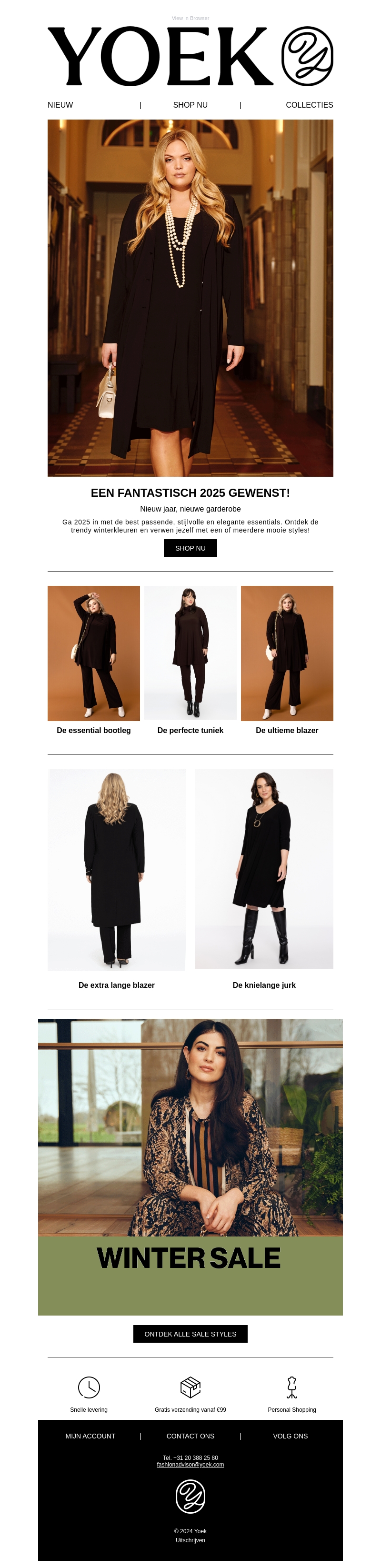 Yoek wenst je een fantastisch 2025! Begin het jaar met een vernieuwde garderobe vol elegante essentials. Verken de perfecte tuniek, ultieme blazers en meer uit de wintercollectie. Mis de winteruitverkoop niet en geniet van gratis verzending vanaf €99.