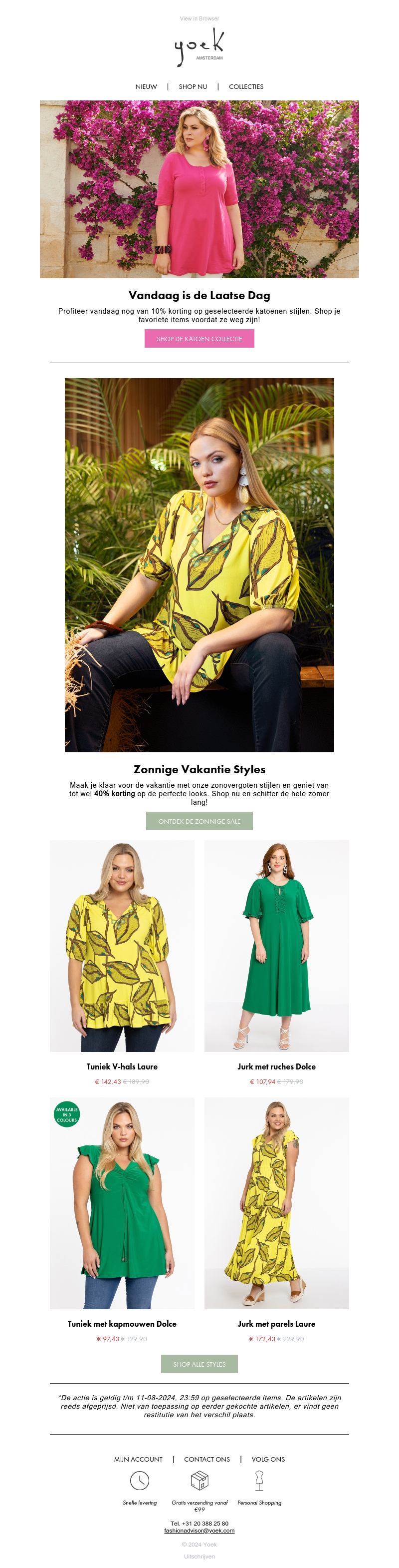 Vandaag is de laatste dag om 10% korting te krijgen op geselecteerde katoenen stijlen bij Yoek Amsterdam. Ontdek zonnige vakantie styles met kortingen tot wel 40%. Mis je kans niet en shop je favoriete items voordat ze weg zijn!