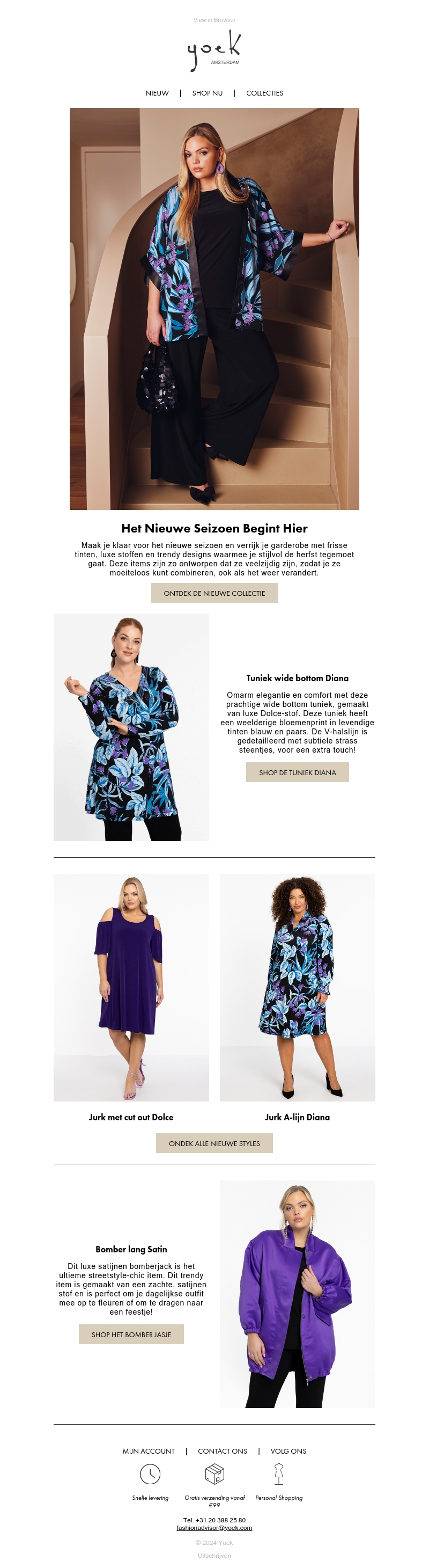 De nieuwe Pre-Fall collectie van Yoek is er! Maak je klaar voor het nieuwe seizoen met frisse tinten en luxe stoffen. Ontdek de veelzijdigheid van de nieuwste items die je garderobe stijlvol verrijken, perfect voor de veranderende seizoenen.
