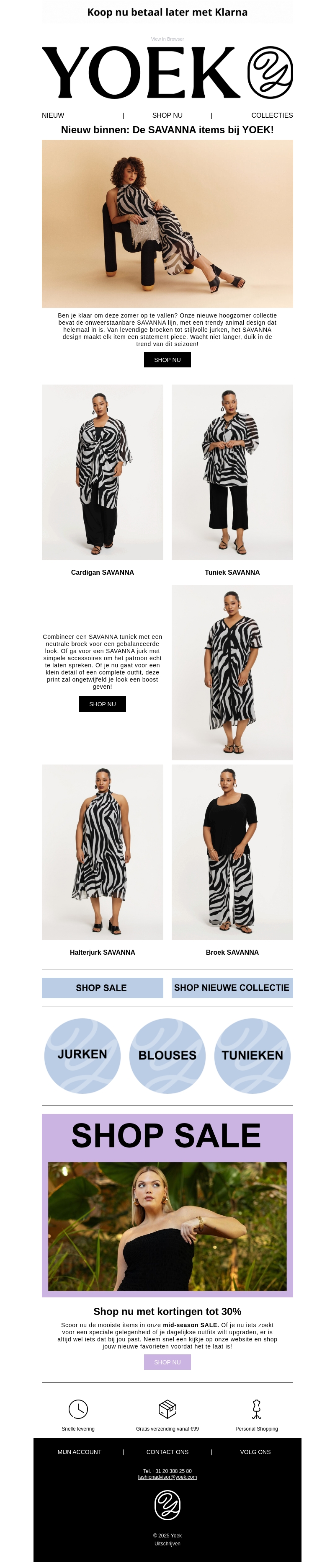 De nieuwste SAVANNA collectie van YOEK is nu beschikbaar. Met opvallende prints en stijlvolle ontwerpen, brengt deze collectie de modetrend van het seizoen naar je toe. Mix en match tunieken, jurken en broeken voor een complete look. Mis de kans niet om je garderobe te verfrissen met deze unieke stijlstukken. Bezoek nu onze website en ontdek de collectie!
