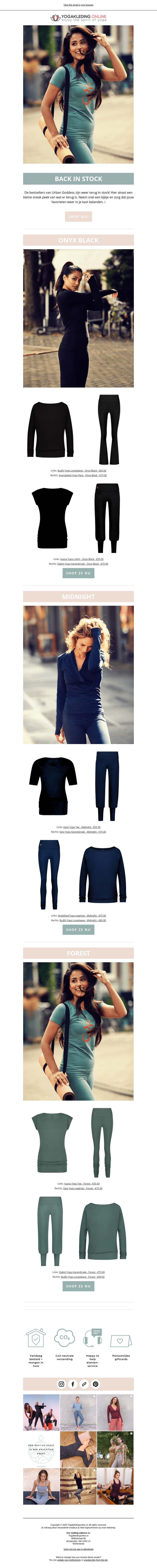 De Urban Goddess favorieten zijn weer op voorraad! Bekijk onze stijlvolle collecties in Onyx Black, Midnight en Forest. Elk item is ontworpen voor comfort en stijl. Perfect voor yoga of dagelijks gebruik. Mis deze kans niet!