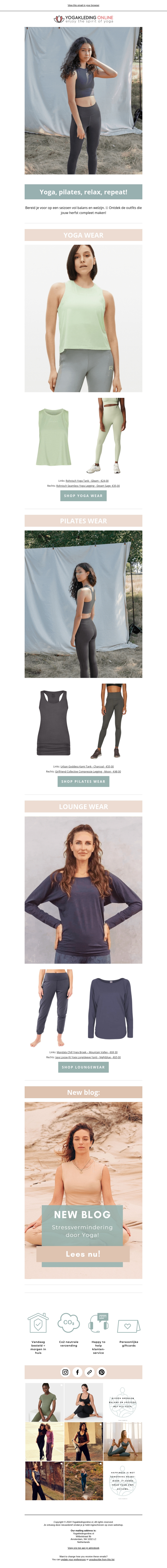 Verken de nieuwste collectie voor pilates en yoga met stijlvolle en comfortabele outfits. Ontdek yoga wear, pilates wear en loungewear speciaal ontworpen voor uw comfort. Lees onze nieuwe blog vol inspirerende yogatips. Ontdek hoe je de beste outfit kiest die bij je lifestyle past. Kom nu meer te weten en shop de perfecte look!